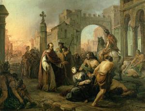 Sant'Epifanio libera la sorella Onora dalle mani dei soldati di Odoacre. Sant'Epifanio libera la sorella Onora