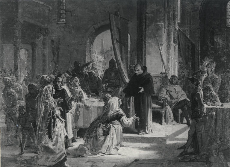 Fra Bossolaro riceve le offerte dalle donne pavesi. Fra Bossolaro riceve le offerte dalle donne pavesi