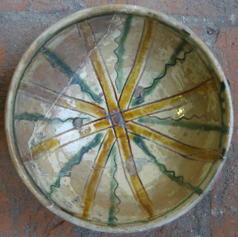 - NOTIZIE STORICO CRITICHE In questo periodo la produzione ceramica non è ancora differenziata tra un centro produttivo e l'altro. Vengono perciò definite 'graffite di area padana'. Tuttavia questo esemplare può plausibilmente essere considerato prodotto da fornaci pavesi confrontandolo con 'pezzi 'sicuramente pavesi o con frammenti provenienti da scavi di archeologia urbana in città (il più cospicuo numericamente e qualitativamente è quello del 1976 per la posa del collettore fognario sul Lungoticino)