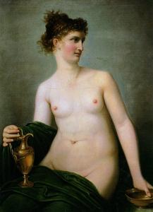 - NOTIZIE STORICO CRITICHE La tela riprende, per soggetto, impostazione e dimensioni, la Ebe dipinta dal Landi nel 1970, oggi conservata presso i Musei Civici di Brescia. Il dipinto pavese differisce da quest'ultima per un più rigoroso impianto neoclassico e per la mancanza del particolare dell'Aquila di Giove che protende il collo per bere dalla coppa. L'opera proviene della raccolta Malaspina (inv. 122) e potrebbe risalire alla fine del 1791, periodo in cui il Landi incontra per la prima volta il collezionista pavese. Sembra lecito supporre che l'Ebe sia stata realizzata dopo quell'incontro, su richiesta dello stesso Malaspina. La Sartori propone per il dipinto una datazione intorno al 1794, individuando un'affinità stilistica fra la tela pavese e i due dipinti dei Musei Civici di Piacenza: Incontro di Ettore con Andromaca e Ettore rimprovera Paride, eseguiti in quella data. Il soggetto del quadro rientra nella ricca serie di scene mitologiche eseguite dal Landi durante la sua intera carriera. Ebe, in quanto dea della giovinezza, ricorre spesso come soggetto nella pittura neoclassica poiché offriva agli artisti l'occasione di eseguire lusinghieri ritratti femminili.