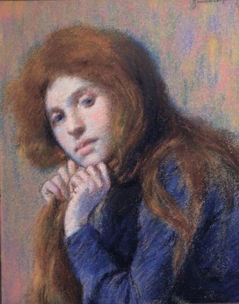 - NOTIZIE STORICO CRITICHE Il pastello, per la trama a forti striature e per il colore intenso e calcato, è vicino stilisticamente ad alcune prove dei primi anni dieci del Novecento, tra le quali Giovinetta che scrive (Il compito), Lettera interessante, datata al 1912, e La lezione, tutte in collezione Arnoldo Mondadori. Questo fa propendere per una datazione a quegli anni; la modella Matilde è protagonista anche di un altro pastello, presente nel catalogo Federico Zandomeneghi (E. Piceni, Federico Zandomeneghi, Milano 1967, n. 637, con disegno preparatorio n. 638) e apparso alla mostra veneziana dedicata al pittore nel 1988 (Federico Zandomeneghi. Un veneziano a Parigi, Milano 1988, n. 78 - collocato nella raccolta Bastioni di Rovereto). L'atteggiamento impertinente della protagonista, con le mani che stringono la folta capigliatura e lo sguardo rivolto allo spettatore, ricorda l'opera Roussotte, del 1888.
