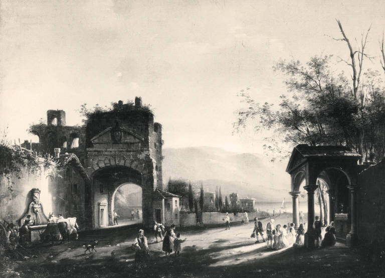 - NOTIZIE STORICO CRITICHE Il dipinto è giunto alle collezioni museali dalla Civica Scuola di Pittura (inv. 201) attraverso il legato di Francesco Belcredi del 1851. La tela venne eseguita, probabilmente, nel 1844, anno in cui fu esposta a Brera con il titolo Veduta campestre di composizione.