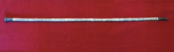 Bastone lavorato a bulino con l'uso del pigmento nero. La narrazione si sviluppa in dodici fasce successive di 8.5 cm d'altezza, intervallate da nastri di 1.5 cm con decorazione a fogliami.