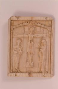 Placchetta di forma rettangolare con angoli superiori tagliati in diagonale. Il bordo liscio racchiude il bassorilievo. Retro completamente liscio.