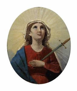 Iconografia devozionale della Vergine, raffigurata trafitta da una spada con lo sguardo rivolto verso il cielo.