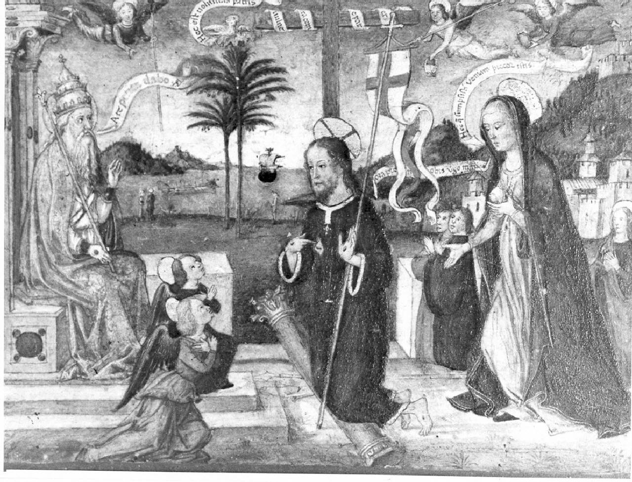 L'Eterno Padre, Cristo risorto, la Vergine, angeli e devoti