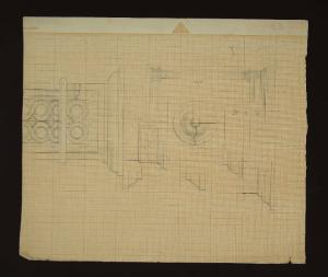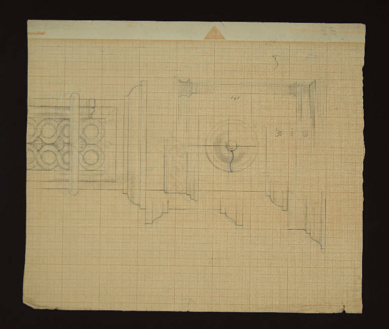 piedistallo per colonna con motivi decorativi\nsegni a matita e numeri sul retro