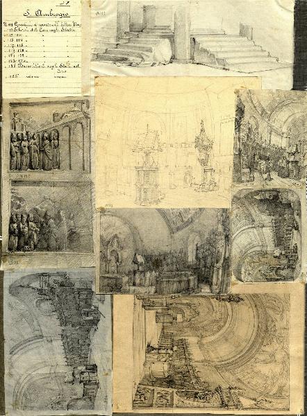 Studi relativi a Sant'Ambrogio. n. 113. Coro con Stalli. Studi relativi a Sant'Ambrogio. n. 113. Coro con Stalli