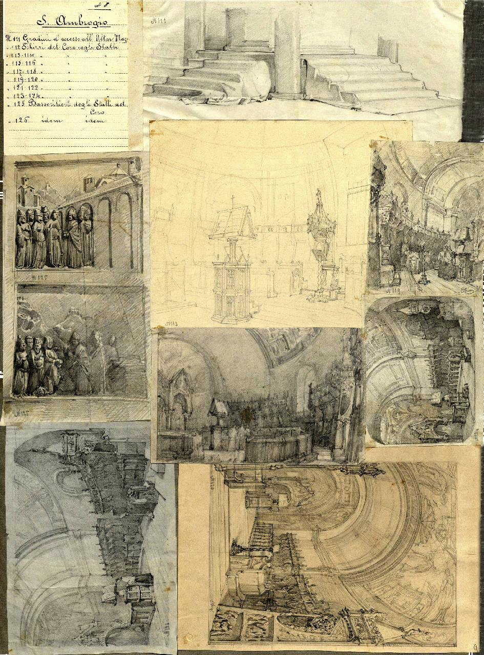 Studi relativi a Sant'Ambrogio. n. 114. Coro con Stalli. Studi relativi a Sant'Ambrogio. n. 114. Coro con Stalli