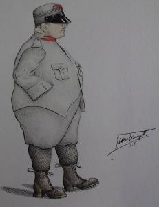 - NOTIZIE STORICO CRITICHE Il soggetto raffigurato è stato identificato solo in base alle caratteristiche uniformologiche: sul colletto della giubba porta le "fiamme cremisi" e sul berretto un fregio di fantasia che ricorda quello dei Bersaglieri; veste stivaletti modello 1912 e calzettoni di lana in sostituzione delle fasce mollettiere mentre i gradi sono da Capitano.