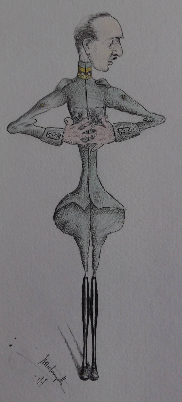 - NOTIZIE STORICO CRITICHE Le mostrine sono di fantasia.L'analisi uniformologica delle mostrine non porta a nessuna indicazione di Reggimento, poiché i colori sono di fantasia; solo i gradi identificano l'Ufficiale di Ordinanza come Tenente Colonnello. Mausanzetta ne enfatizza la longilineità.