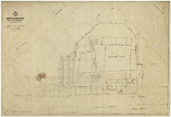 Progetto del teatro sulla piazza S. Fedele. Area del lotto. Progetto del teatro sulla piazza S. Fedele. Area del lotto