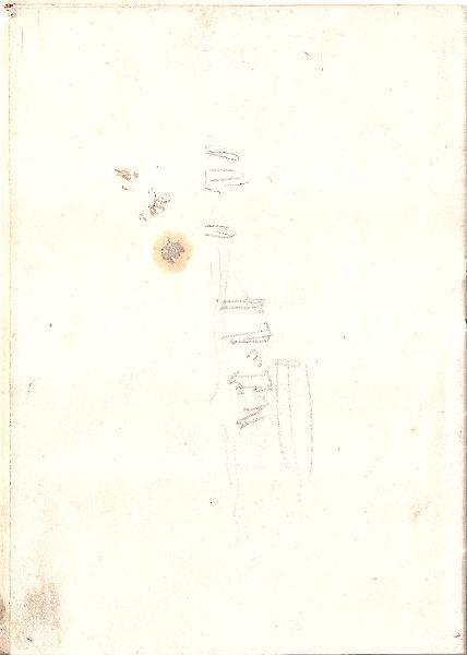 - NOTIZIE STORICO CRITICHE Il foglio fa parte di un libretto-diario datato 1918 di Ambrogio Lombardi, avente come titolo "Appunti di disegni e quadri che si trovano presso il Conte di Torino e il Generale Warmondo. Barattieri di San Pietro", composto da dieci pagine, contenente schizzi a matita. L'album era precedentemente conservato presso l'Archivio di Storia Contemporanea già Archivio della Guerra delle Raccolte Storiche, Cart. 22 ed ora è collocato con segnatura Prez. XXs. p. 55 nella Collezione Disegni.