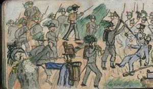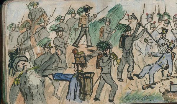 - NOTIZIE STORICO CRITICHE Serie di disegni conservati all'interno di un taccuino posseduto dall'artista Camillo Ghisi.\nScena raffigurante una battaglia.