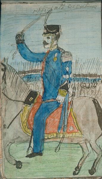 - NOTIZIE STORICO CRITICHE Serie di disegni conservati all'interno di un taccuino posseduto dall'artista Camillo Ghisi.\nRitratto di ufficiale cavaliere con truppe.
