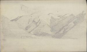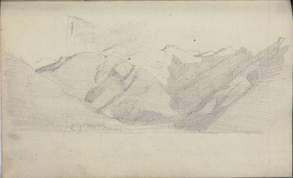 Paesaggio naturale a tratteggio con montagne realizzato a matina su cartoncino.