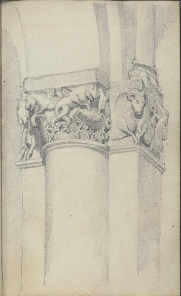 Schizzo raffigurante un particolare della navata di Sant'Ambrogio. Nel capitello sono visibili animali mitologici quali l'ippocampo e l'ariete.