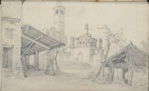paesaggio con chiesa di Santa Maria presso San Satiro. paesaggio con chiesa di Santa Maria presso San Satiro
