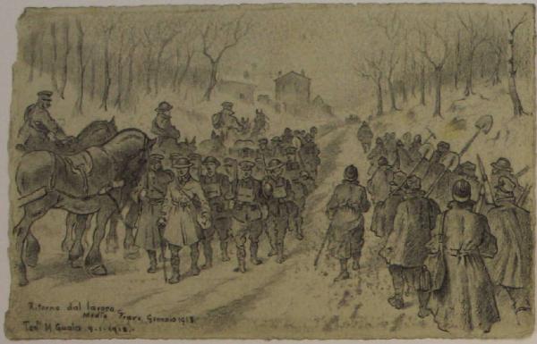 Ritorno dal lavoro. - Medio Piave, Gennaio 1918.. prima guerra mondiale