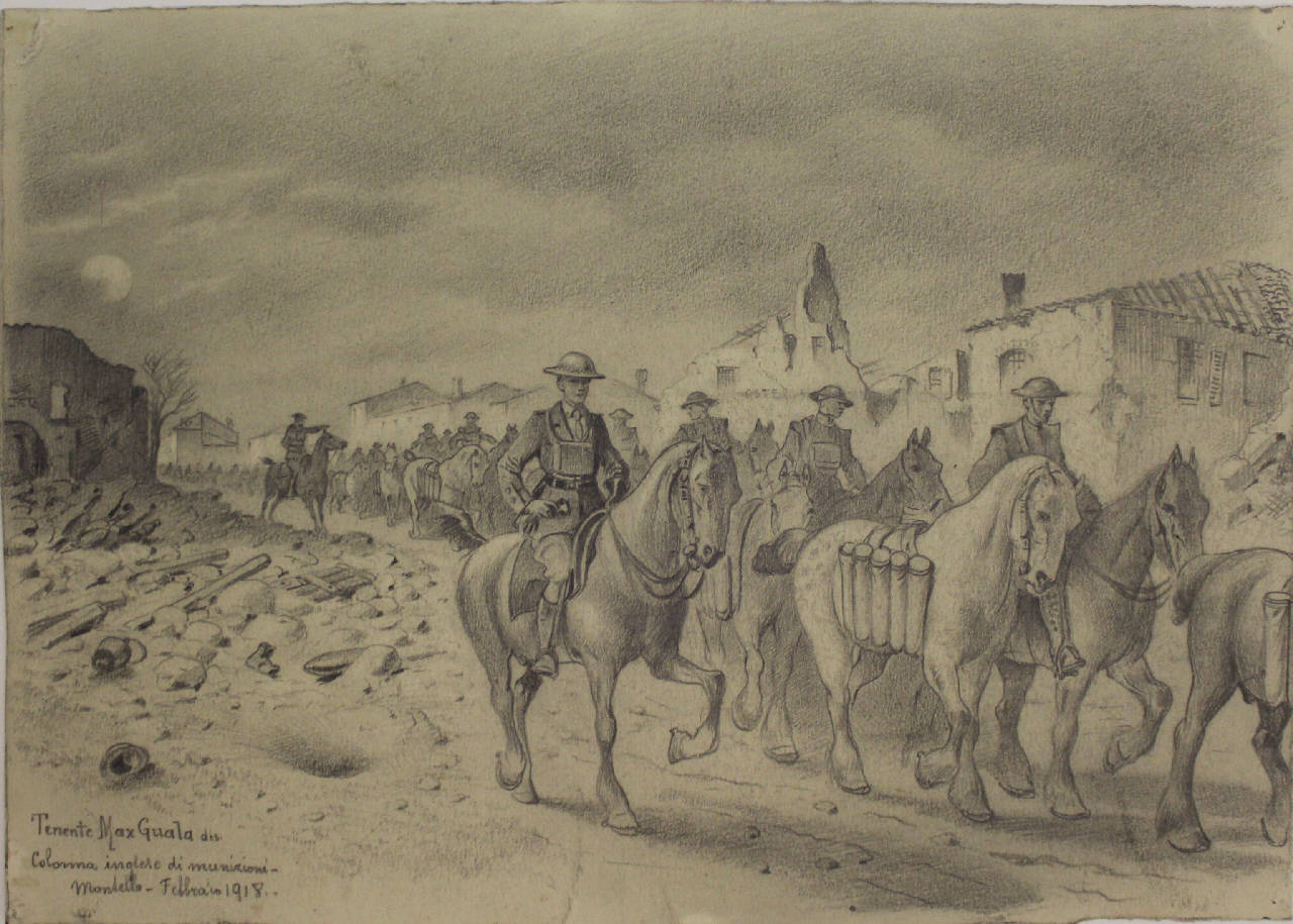 Colonna inglese di munizioni - Montello - Febbraio 1918.-. prima guerra mondiale