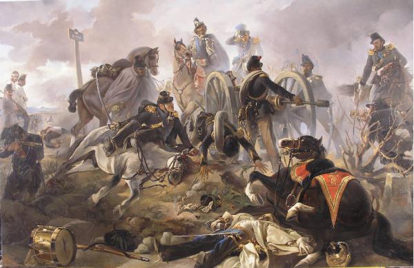 - NOTIZIE STORICO CRITICHE La grande tela dedicata alla battaglia di Novara, nasce in seguito alle conversazioni con il conte Carlo Felice Nicolis di Robilant, protagonista dell'episodio narrato e rappresentato nel quadro. A capo di una batteria leggera, dopo aver cacciato la cavalleria nemica e averne ucciso il colonnello, cade al suolo sotto il proprio cavallo, colpito da un proiettile che gli ha troncato quattro dita della mano sinistra. A osservare l'episodio, il giovane Vittorio Emanuele, il cui padre abdicherà in suo favore proprio dopo questa sconfitta.