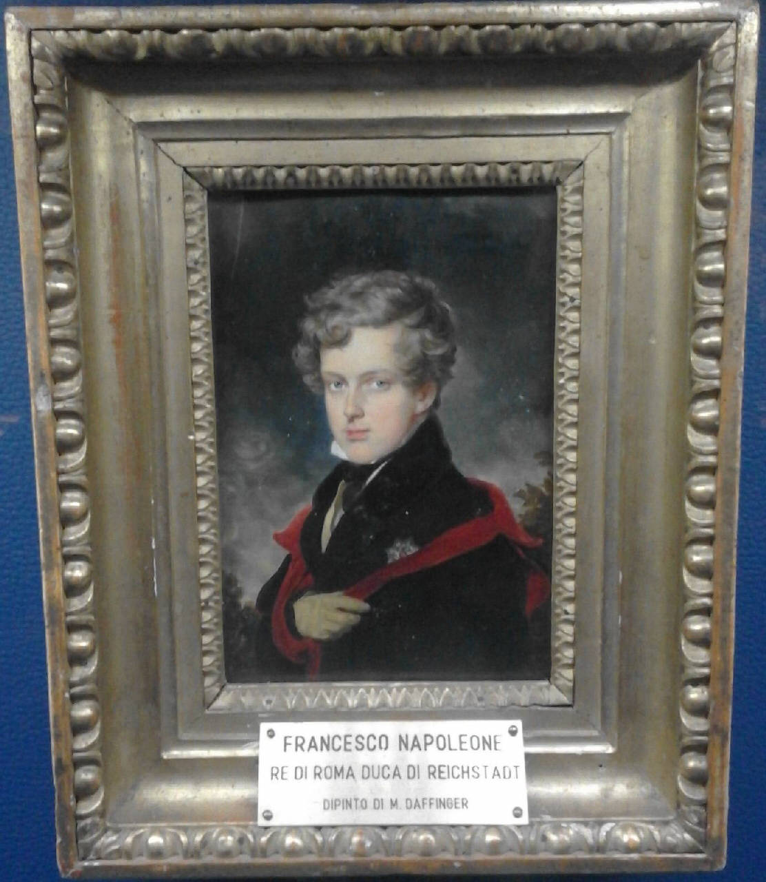 - NOTIZIE STORICO CRITICHE Piccolo ritratto di Napoleone Francesco Carlo Giuseppe (1811-1832), figlio di Napoleone I e Maria Luisa d'Austria. Appena nato ricevette il titolo dire di Roma. Dopo Waterloo Napoleone abdicò in suo favore ma la Camera dei Deputati dichiarò decaduti l'imperatore e la sua famiglia. Visse, quindi a Vienna ed ebbe il titolo di duca di Reichstadt.