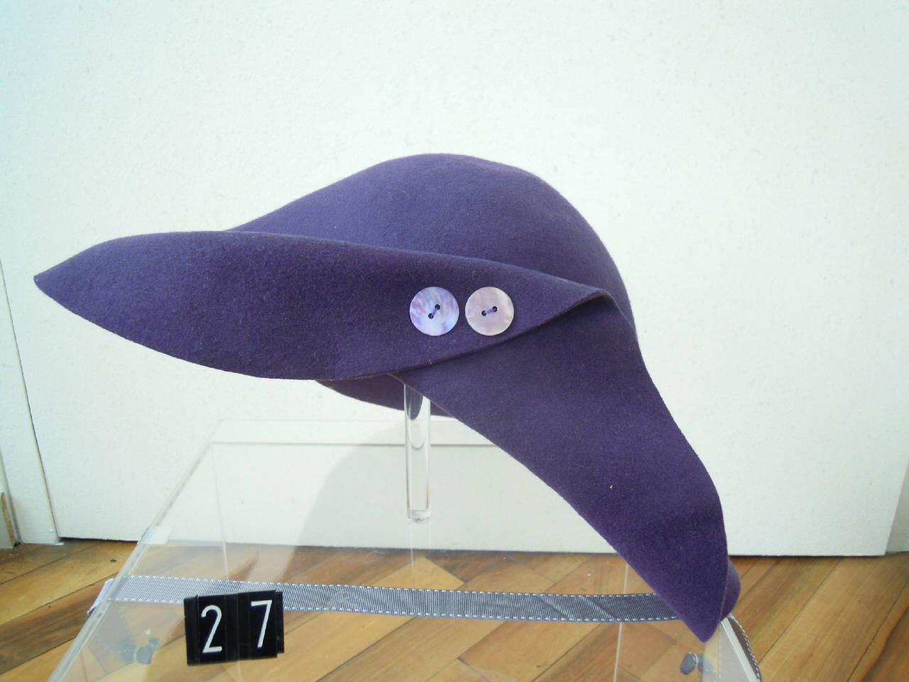 Feluca in feltro viola con due bottoni madreperlacei.