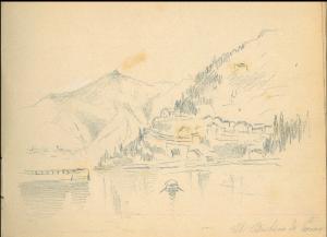 - NOTIZIE STORICO CRITICHE Serie di disegni conservati all'interno di un taccuino da viaggio datato 1892 e posseduto dall'artista Camillo Ghisi. \nLa scena lacustre presenta il monte Bisbino di Como con alcune abitazioni ed imbarcazioni abbozzate dall'artista.
