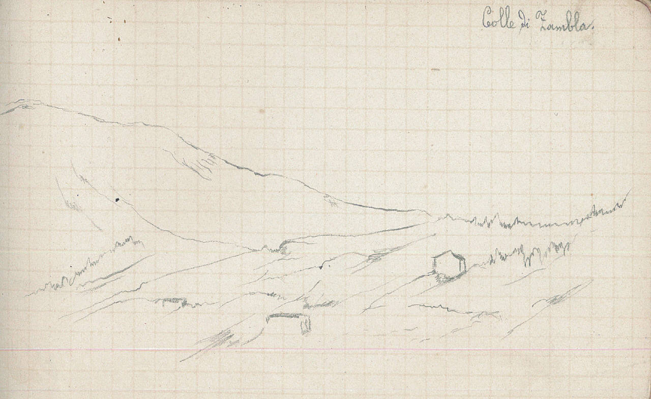 - NOTIZIE STORICO CRITICHE Serie di disegni conservati all'interno di un taccuino da viaggio posseduto dall'artista Camillo Ghisi.\nSchizzo a matita del Colle di Zambla.