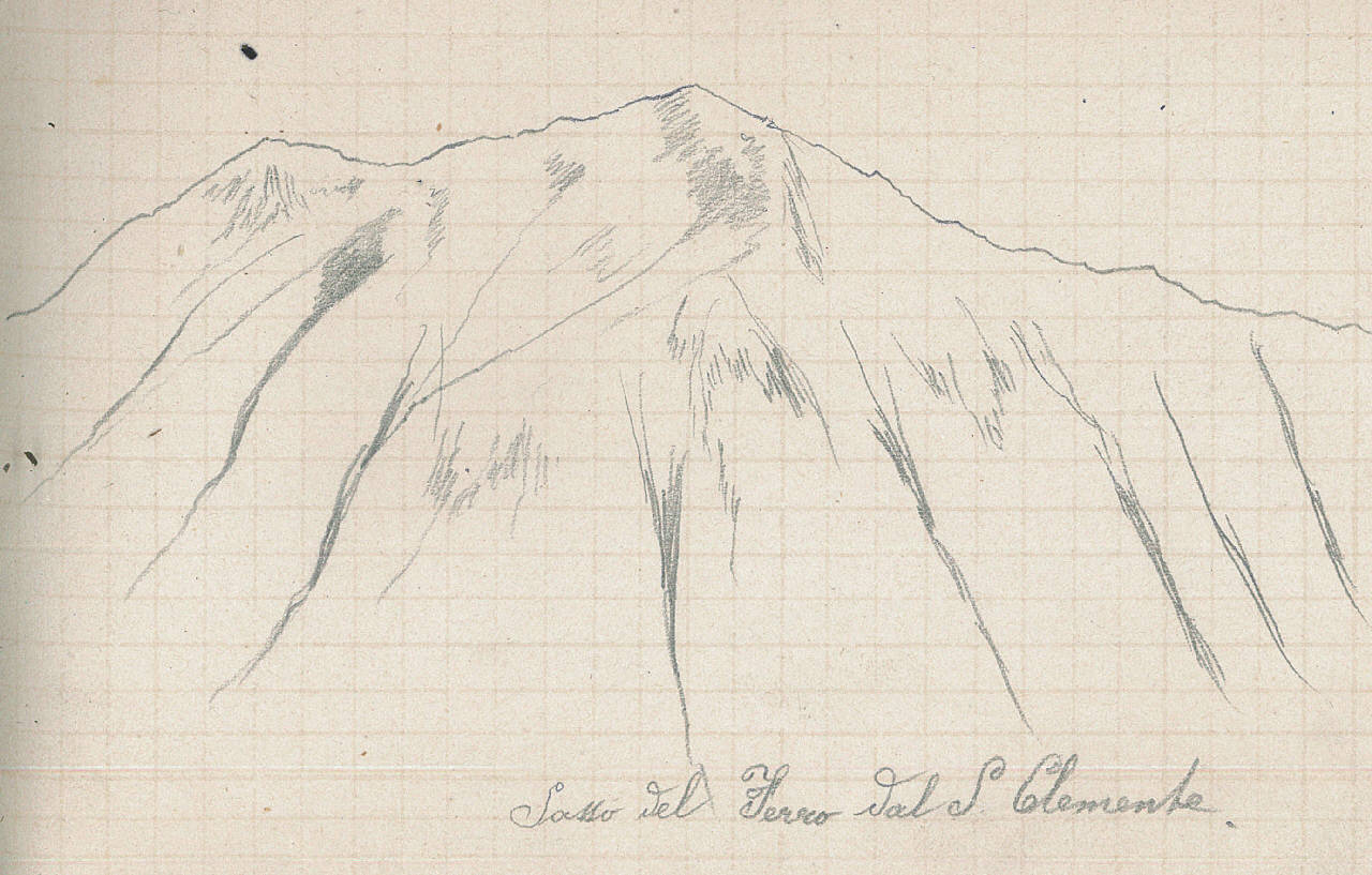 - NOTIZIE STORICO CRITICHE Serie di disegni conservati all'interno di un taccuino da viaggio posseduto dall'artista Camillo Ghisi\nSchizzo a matita raffigurante il Sasso del Ferro visto dal Santuario di San Clemente in provincia di Varese.