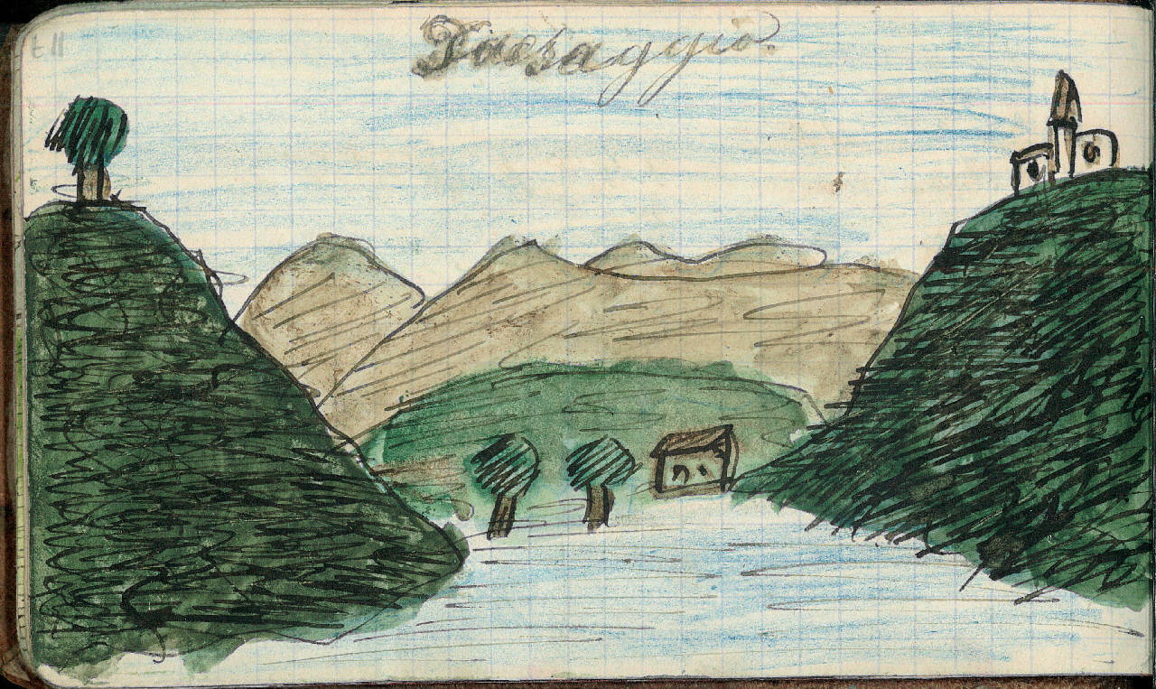 - NOTIZIE STORICO CRITICHE Serie di disegni conservati all'interno di un taccuino posseduto dall'artista Camillo Ghisi.\nScena raffigurante un paesaggio collinare con il mare in primo piano.