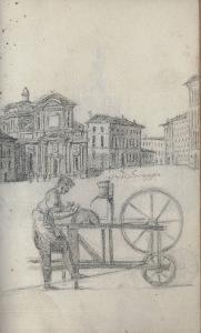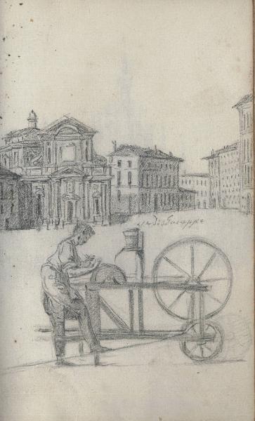- NOTIZIE STORICO CRITICHE Disegno su due registri.\nParte del taccuino "Raccolta Bisi n. 448 L/ Fondo Bisi Cart. P. 8 n.10".