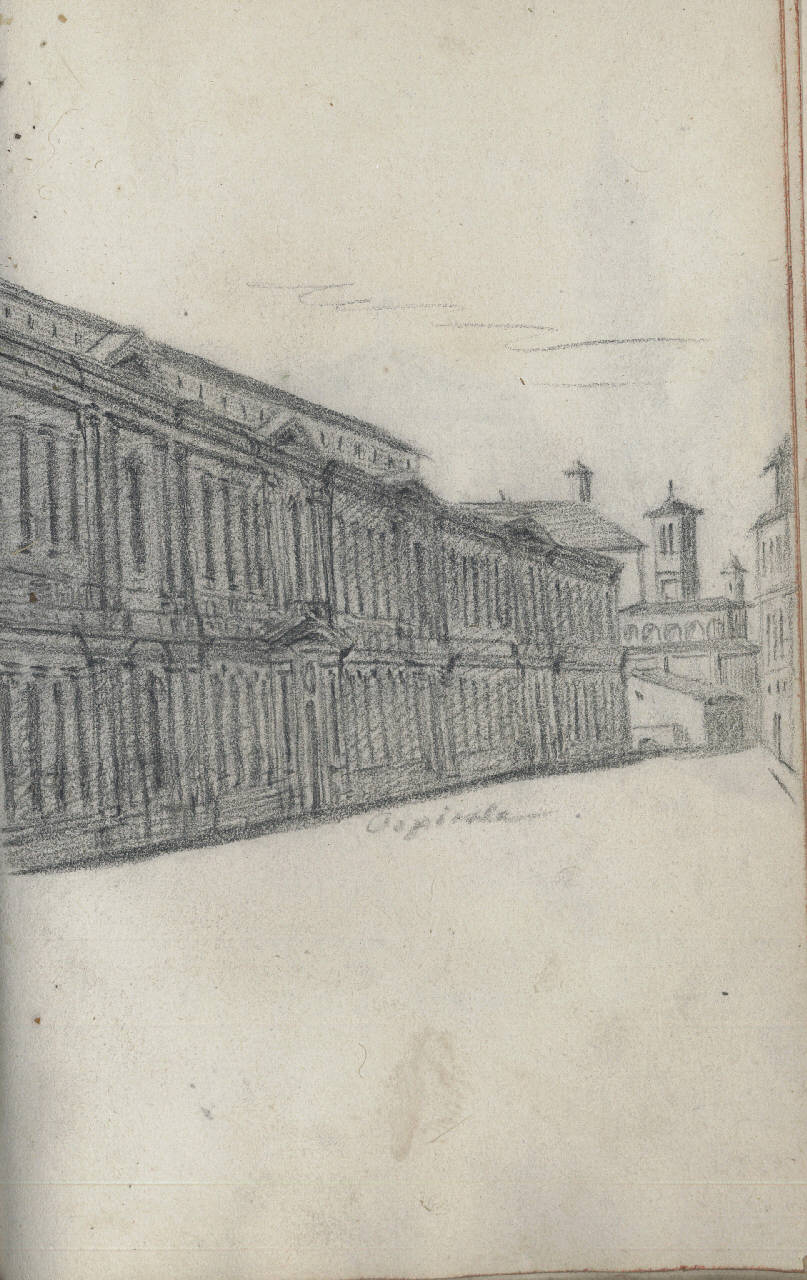 - NOTIZIE STORICO CRITICHE Disegno su due registri.\nParte del taccuino "Raccolta Bisi n. 448 L/ Fondo Bisi Cart. P. 8 n.10".