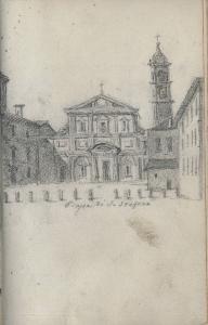 - NOTIZIE STORICO CRITICHE Disegno su due registri.\nParte del taccuino "Raccolta Bisi n. 448 L/ Fondo Bisi Cart. P. 8 n.10".