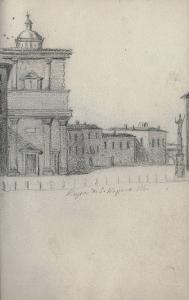 - NOTIZIE STORICO CRITICHE Disegno su due registri.\nParte del taccuino "Raccolta Bisi n. 448 L/ Fondo Bisi Cart. P. 8 n.10".
