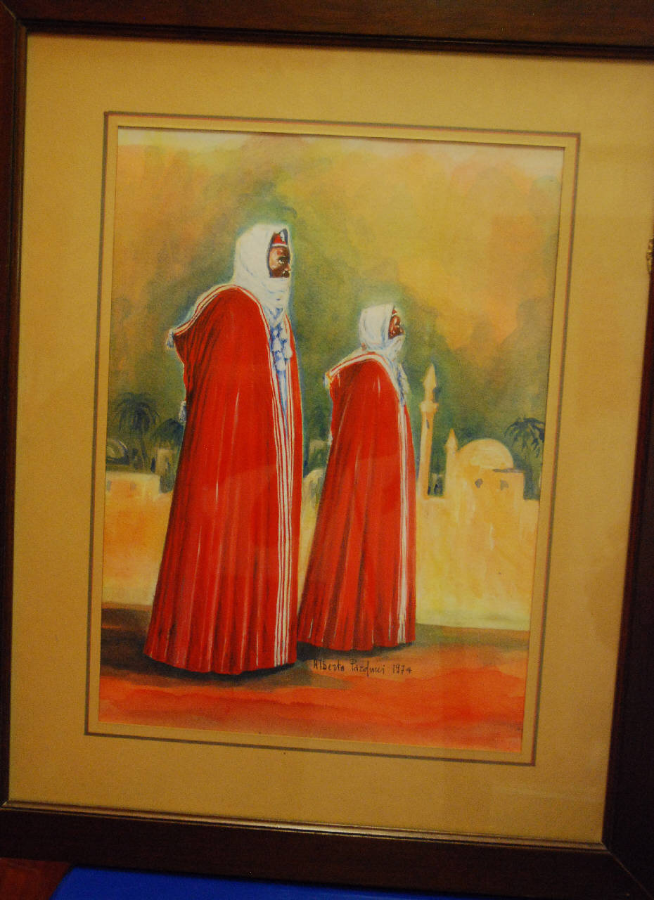 - NOTIZIE STORICO CRITICHE Il dipinto raffigura due Zaptié libici. Zaptié era il nome con cui venivano indicati i membri dell'Arma dei Carabinieri reclutati tra le popolazioni indigene di Libia, Eritrea e Somalia tra il 1888 e il 1942. Il termine derivava dal turco zaptiye (polizia), che designava la polizia a cavallo turca reclutata nell'Isola di Cipro, allora sotto il dominio britannico.