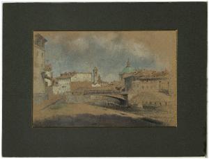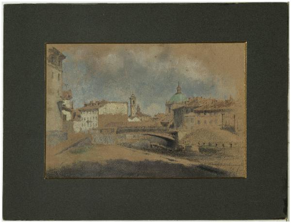 Veduta di Milano con naviglio in primo piano