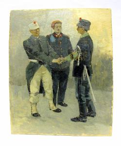 tavola dipinta ad olio raffifurante alvuni uomoni dell'esercito