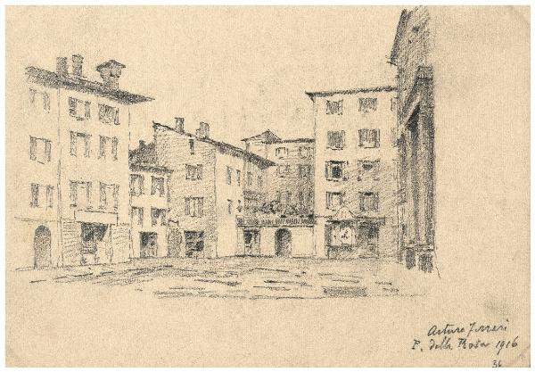 Disegno a matita raffigurante Piazza della rosa\nIl disegno si trova all'interno di un album contenente una raccolta di disegni di Arturo Ferrari.