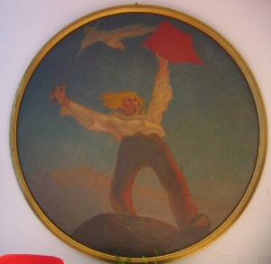 - NOTIZIE STORICO CRITICHE Il dipinto entra nel 1934 come dono di Aldo Carpi con la seguente registrazione "Grande quadro a olio raffigurante allegoria dell'intervento. Opera del donatore - formato circolare Ø 2.20, con cornice. La figura rappresenta Pietro Calvi".\nLa grande tela è immortalata in una bella immagine pubblicata nel settembre 1935 sulla rivista Città di Milano che mostra la sua collocazione originaria nel Museo della Guerra allestito al Castello Sforzesco (A. Dotti, I manifesti della vittoria. Museo della Guerra, in "Città di Milano", settembre 1935, pp. 453-247: 457), in cui il dipinto era esposto al di sopra di una serie di documenti relativi alle prime campagne italiane in Africa. Collocato successivamente a chiusura del Museo del Risorgimento nella sede di Palazzo Moriggia assieme ad altri documenti relativi alla prima guerra mondiale e alla campagna di Libia, venne spostato nel Museo di Storia Contemporanea a Palazzo Morando fino alla fine degli anni Novanta, quando il museo venne chiuso.\n\nL'intervento italiano costituisce uno degli esiti più riusciti di Aldo Carpi nella pittura di grande formato. Il maestro, nato a Milano nel 1886, ha vissuto nel capoluogo lombardo gran parte della sua vita, fino alla morte nel 1973. La sua vasta produzione artistica testimonia la sua costante ricerca nel cogliere la realtà attraverso simboli eloquenti: nella sua poetica le "maschere", i "carabinieri", gli "Charlot" diventano i protagonisti più frequentemente evocati e portatori di significati 'altri'. Carpi è stato professore dell'Accademia di Brera e ha partecipato alla prima guerra mondiale. Denunciato per antifascismo, nel 1944 è stato deportato nei campi di sterminio di Mathausen e di Gusen. Di questo periodo ha lasciato un commosso e straordinario racconto nelle pagine del Diario di Gusen, pubblicato per la prima volta nel 1971.\n\nGli anni tra il 1912 e il 1919 sono contrassegnati da una sperimentazione "sintetica" (M. Bianchi, M. De Stasio, Introduzione al catalogo, in Aldo Carpi (1886-1973). Mostra Antologica, catalogo della mostra (Milano, Palazzo Reale, 19 gennaio-25 febbraio 1990), Bergamo 1990, pp. 27-32: 27-28), uno studio di nuove forme espressive legato alle esperienze del tardo simbolismo italiano ed europeo che lo avvicina a Vallotton, Denis, Bernard, Spilliaert e lontana dalle ricerche futuriste. I dipinti del 1915, così come L'intervento italiano, sono caratterizzati da una stesura magra e sintetica, ma carica di espressività.\nBaj inserisce il dipinto del suo professore dell'Accademia di Brera nel dopoguerra all'interno della patafisica, una corrente artistica nata da Alfred Jarry definita come una scienza che si prefigge di studiare il particolare e le eccezioni e spiegare un universo supplementare al nostro. Bay sottolinea infatti l'ambiguità dell'interpretazione per i simboli in esso rappresentati: L'intervento italiano è un tondo scorciato dal basso in cui un ragazzo pare osannare con slancio giovanile l'entrata dell'Italia in guerra; agita con il braccio sinistro alzato un panno rosso, forse una camicia garibaldina, e contemporaneamente con la destra un panno bianco come per arrendersi. "Attacco al nemico della patria e simultanea resa allo stesso si liquefano nell'irreale cielo segantiniano che fa da fondale" (E. Baj, Per una patafisica dell'arte, in Jarry e la Patafisica. Arte, letteratura, spettacolo, catalogo della mostra (Milano, Palazzo Reale, [27 maggio-20 agosto 1983]),a cura di E. Baj, V. Accame, B. Eruli, Milano 1983, pp. 21-26: 23).