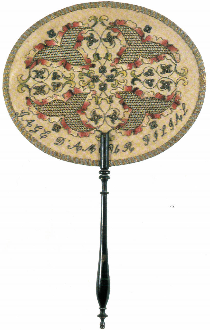 - NOTIZIE STORICO CRITICHE Nella parte bassa delo schermo è ricamata la scritta "Gage D'Amour Filial", composta di lettere che ricordano quelle dei "samplers": in questo caso il significato della frase riconduce la fattura della ventola ad un dono della figlia alla madre.