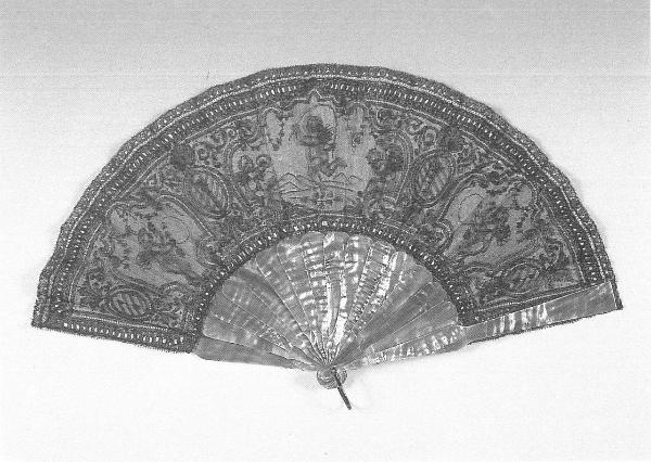 - NOTIZIE STORICO CRITICHE In epoca vittoriana vengono prodotti pizzi Chantilly con motivi di Amorini, realizzati per ventagli e montati su stecche di madreperla bianca o tinta in vistosi colori; un esemplare simile a questo è conservato presso il Fine Arts Museum di San Francisco.