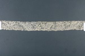 Ricco bordo di pizzo a fuselli con foglie e fiori legati da barrette. cm 300x6