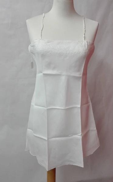 Due sottovesti in batista di cotone bianco; tessuto in sbieco; \nC_2852a: ricamo frontale a punto ombra e punto pieno, piccola centina superiore e inferiore. \nC_2852b: ricamo frontale a punto ombra e punto pieno, finitura in Valenciennes meccanica sul bordo superiore e centina sul bordo inferiore.