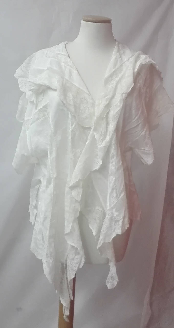 Liseuse in tela di cotone con volant e entre-deux di pizzo a fuselli