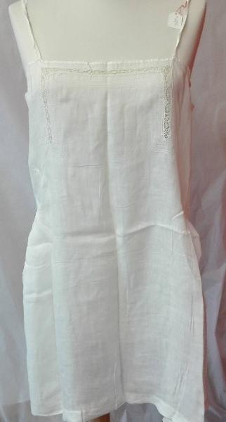 Sottabito di batista di cotone, sostenuto da spalline; \nUn minuto orlo a giorno profila le spalline, lo scollo e il fondo creando un motivo geometrico sulla parte anteriore del corpino dove si trova anche un intarsio di merletto ad ago. \npieghe ai fianchi.