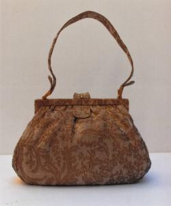 Borsetta tessuto lamè argento e oro della Ditta Bianchini- Férier Parigi, cerniera Ditta Boglino Parigi, saltarello marcassites.