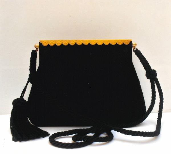 Borsetta in tessuto cordonato, cerniera rabat guilloché Ditta Gouy Parigi.