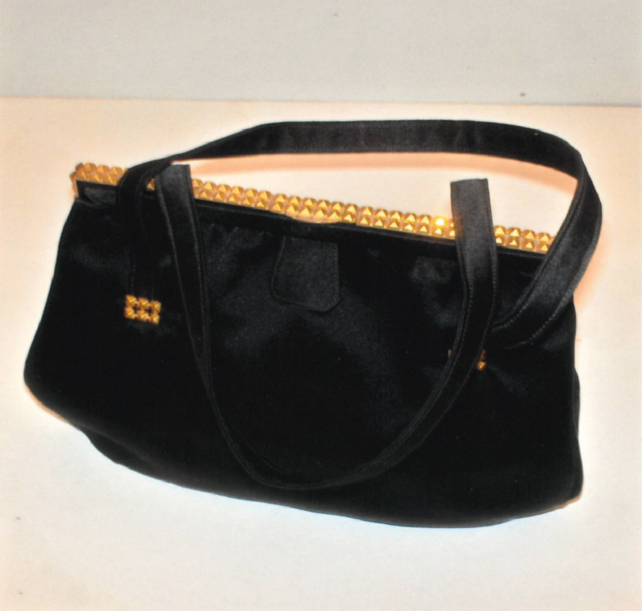 Borsetta in raso nero con la cerniera della Ditta Gouy Parigi