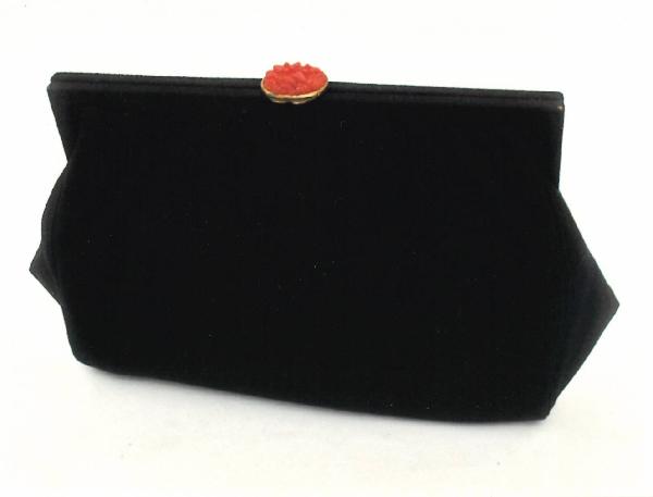 Borsetta in pelle di camoscio nera, cerniera con saltarello di vetro stampato